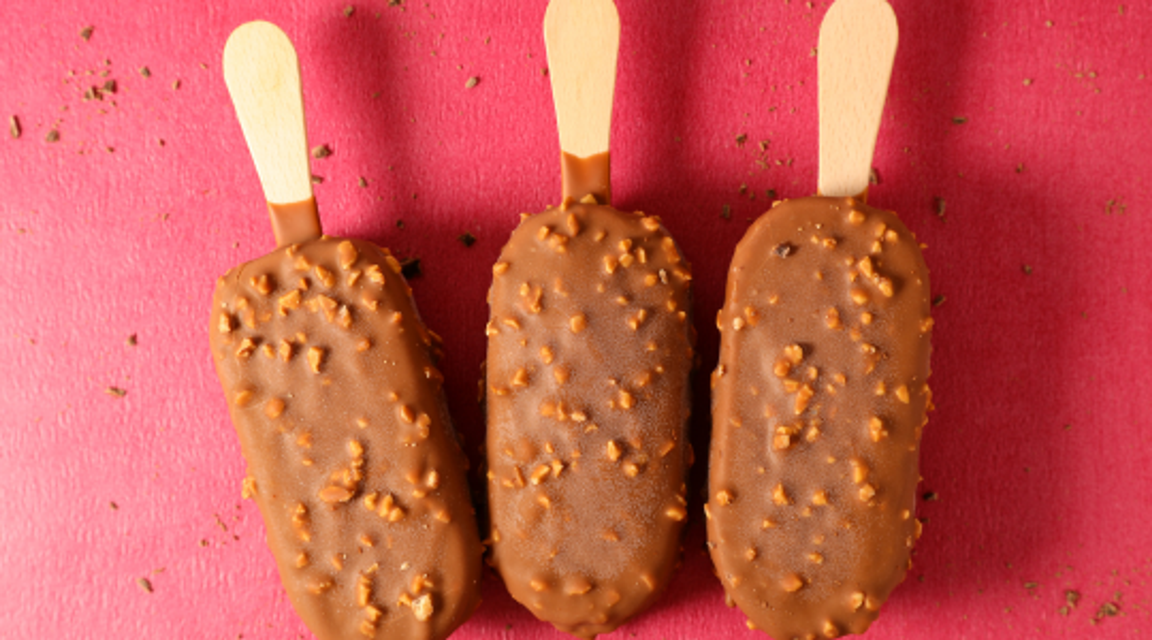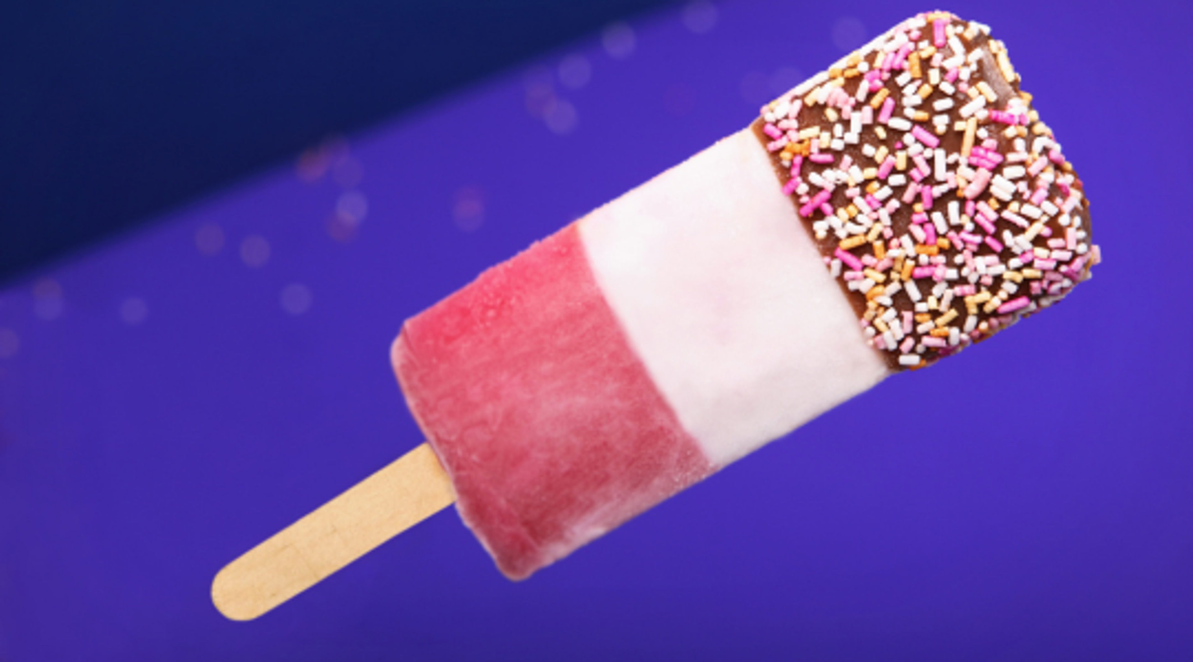 They come in three delicious sections: a chocolate coating with rainbow sprinkles, creamy vanilla ice cream in the middle, and a fruity red lolly at the base. There’s nothing more to say: the frozen sprinkles + strawberry + chocolate combo just works.